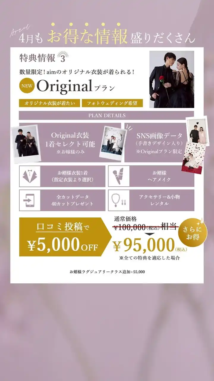 ラグジュアリー/オリジナルクラス追加料金なし&6月以降撮影で¥10,000OFF |