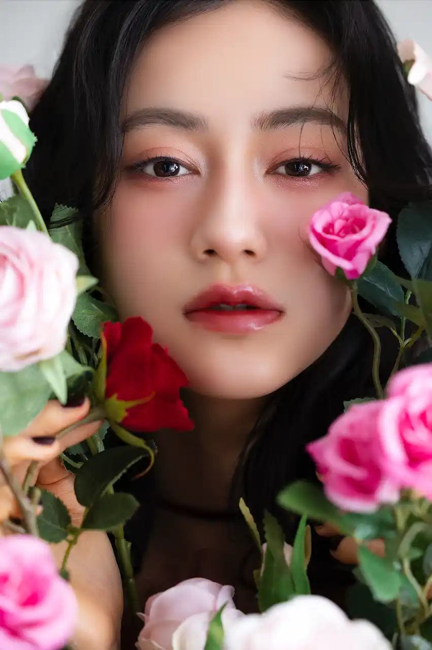 メイクはチークとリップをポイントにうさぎのような儚さを表現。 |