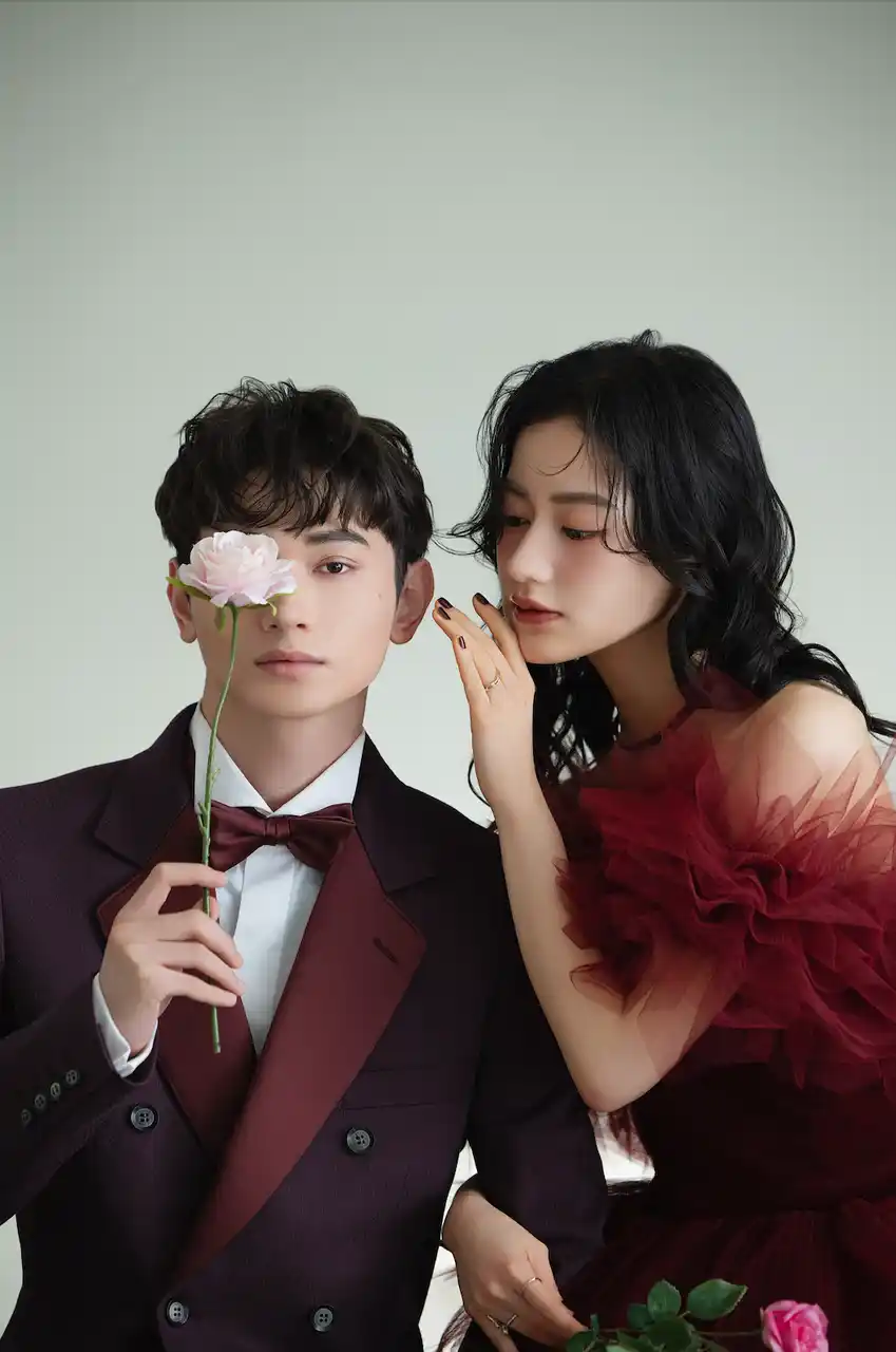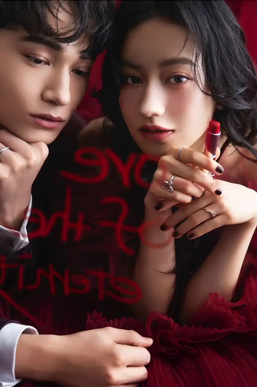深紅ドレスのモードなハイファッション感に、空間とヘアメイクに甘さを足して、レディ感を。 |