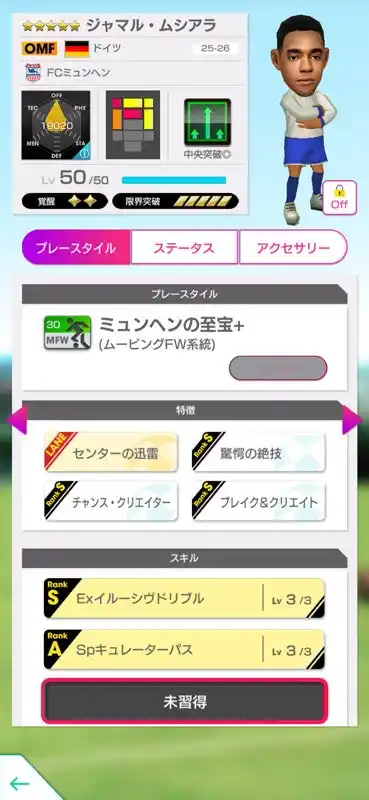 「マヌエル・ノイアー」「ハリー・ケイン」「ヨシュア・キミッヒ」「ジャマル・ムシアラ」「レナート・カール」「アレクサンダー・パヴロヴィッチ」「アルフォンソ・デイビス」「ヨナタン・ター」「ニコラス・ジャクソン」といったFCバイエルン・ミュンヘンのスーパースターが、得意戦術中央突破の新★5選手として登場する“8th Anniversary FEVER STAR FES”を開催! 今回はフリースキルバージョンの「ジャマル・ムシアラ」も登場するほか、スカウトに登場する新★5選手の★4バージョンが手に入る“スペシャルログインボーナス”も実施します。 |