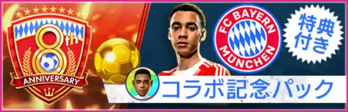 GBショップや公式ストアに、特典として新★5選手「ジャマル・ムシアラ」が付いてくる“FCバイエルン・ミュンヘンコラボ記念パック”が登場します。 |