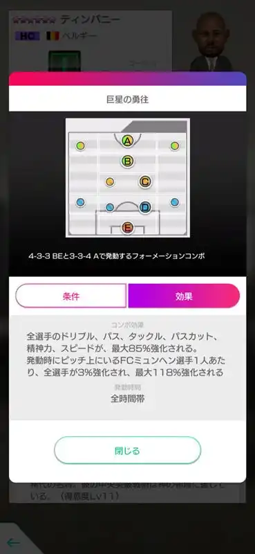 該当の選手を編成すると強くなるフォーメーションコンボ「巨星の勇往」と、戦術得意度Lv11を持つ新★6監督「ティンパニー」が登場! |