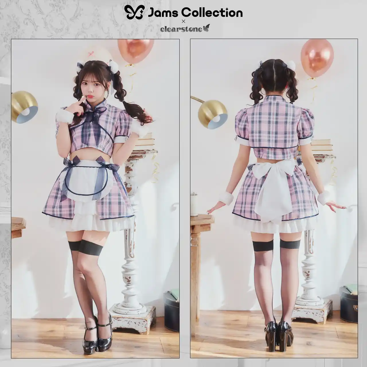 | チャイナテイストを取り入れた、ひと味違うメイド風コスチューム。甘いピンクに合わせたネイビーが、ちょっぴりレディなスパイスに。 | ||||||||||||||