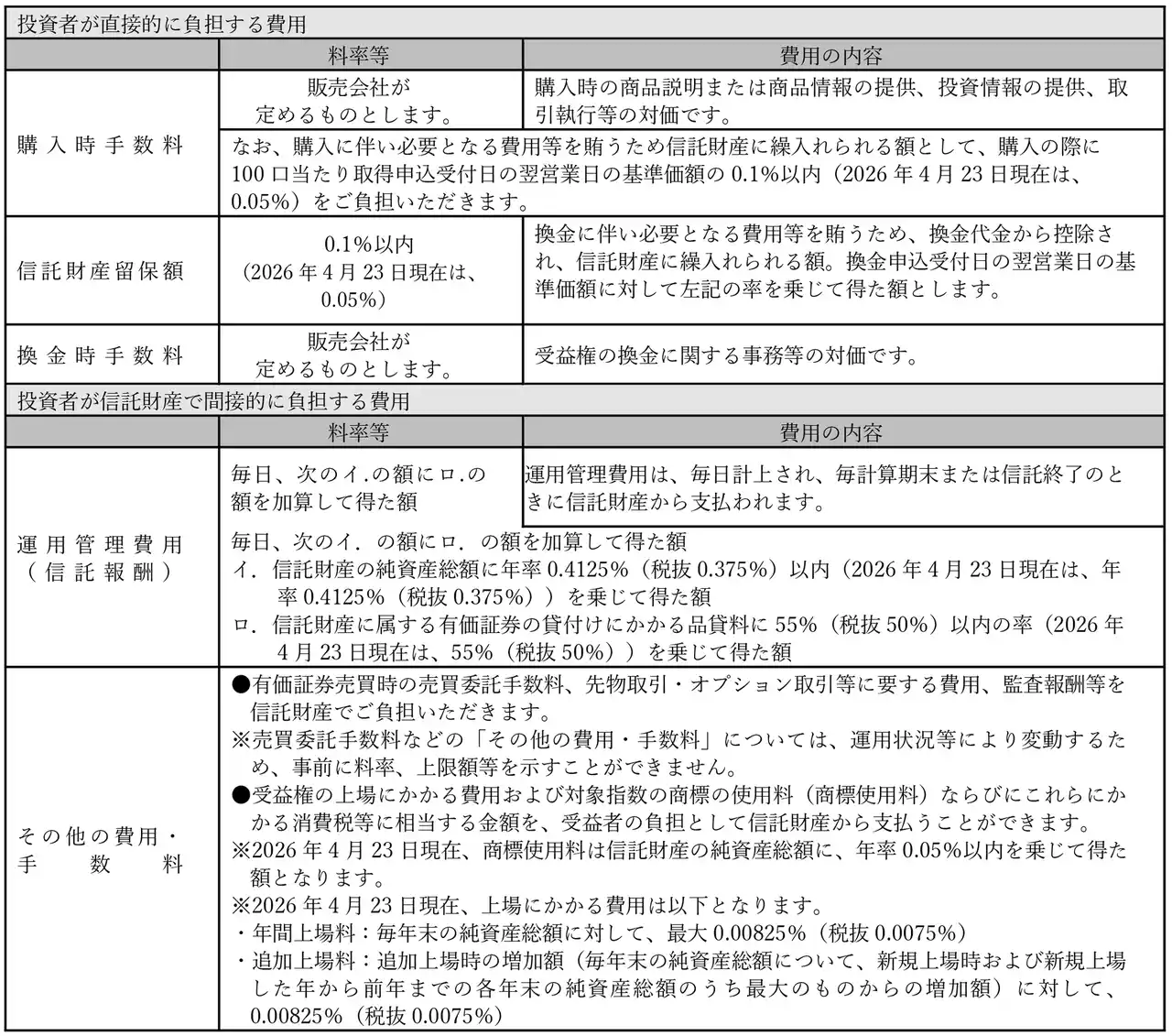 ファンド費用 |