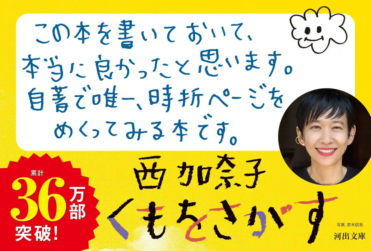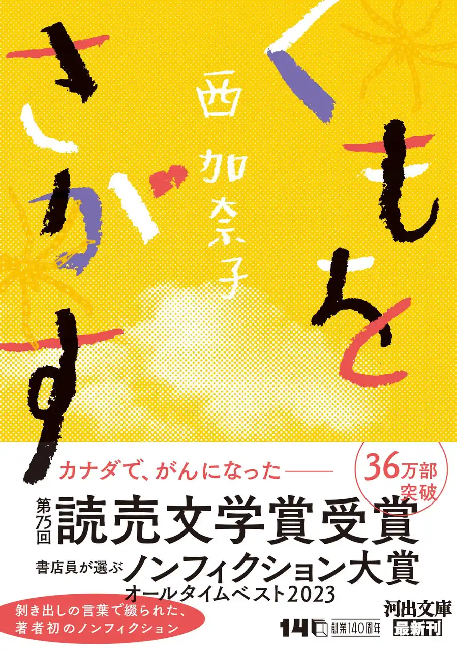| 【カナダで、がんになった──】西加奈子 初のノンフィクション、ついに文庫化! 36万人が「私のために書かれた」と感動した『くもをさがす』無料公開|Web河出 | ||||||||||||||