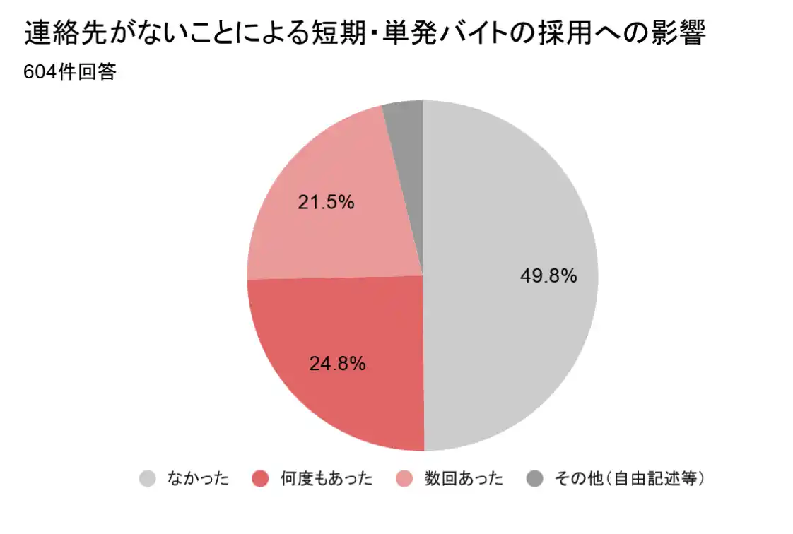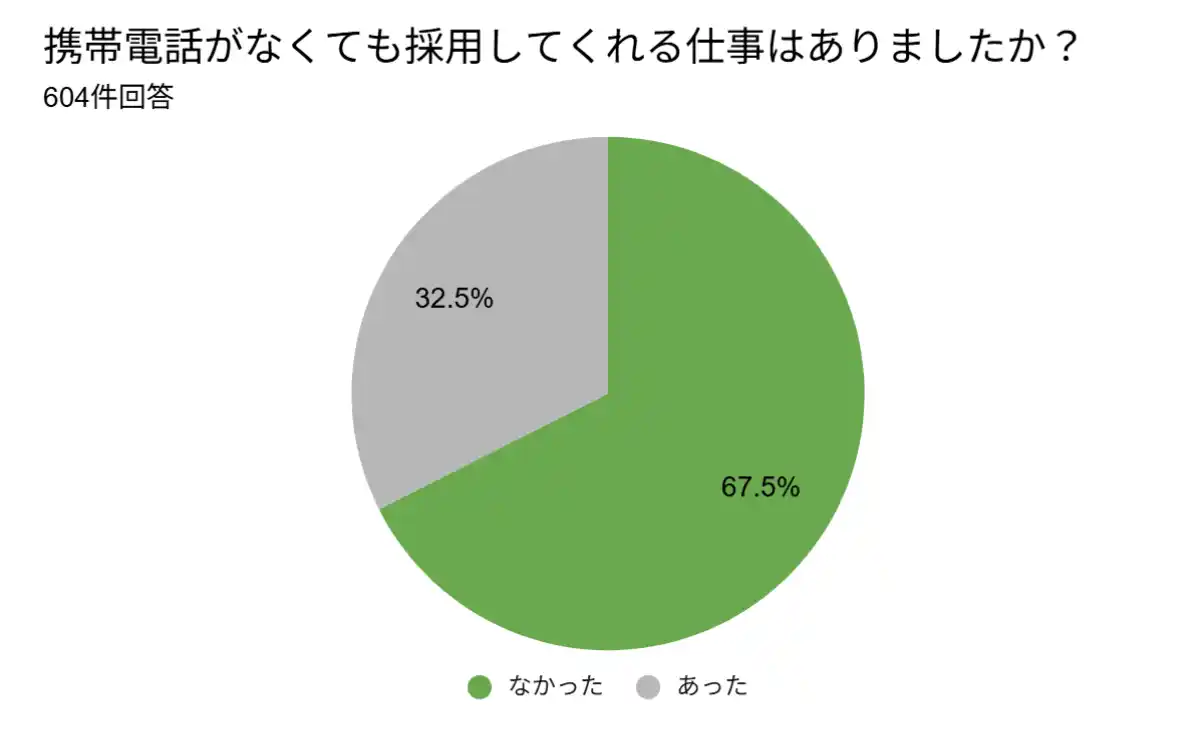 このような状況が重なった結果、携帯電話がない期間に実際に採用してくれた仕事が「なかった」と回答した人は408名(全体の約7割)という結果になりました。 |