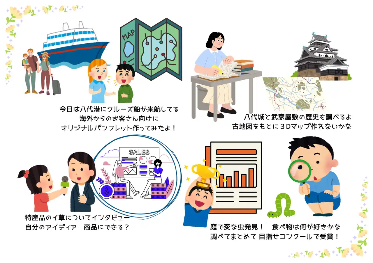 熊本八代校では、地域の産業や歴史文化などをテーマに探究し、様々なコンクール等に挑戦。活躍の場を広げる。 |
