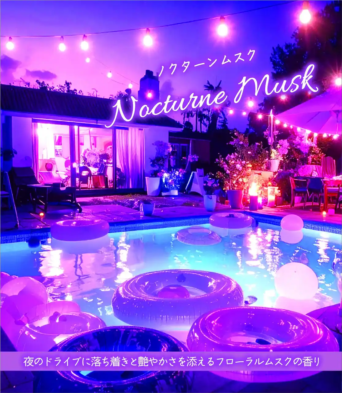 SNSや動画配信サービスの普及により、「夜景ドライブ」「ナイトプール」「ナイトクルーズ」が人気のレジャーシーンとして注目されており、夜の空気感やムードに寄り添った製品ニーズが高まっています。仕事終わりのリラックスタイムや、大切な人との特別な時間を演出する要素として、夜をイメージした香りは新しい価値を提供できると考えます。 |