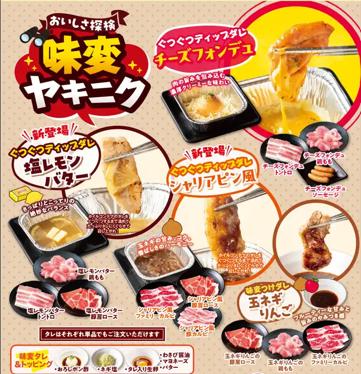 今回のリニューアルでは、いつもの焼肉を自分流にアレンジして楽しむ「味変(あじへん)ヤキニク」をさらに強化。難しいルールは一切なし!「次は何を試そうかな?」と、バラエティ豊かな美味しさを巡る「味の大冒険」のような、賑やかで安心感のある食べ放題をお届けします。 |