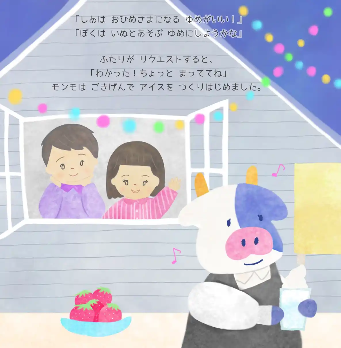 真夜中牧場オリジナル絵本「モンモさんのまよなかアイス」をプレゼント |