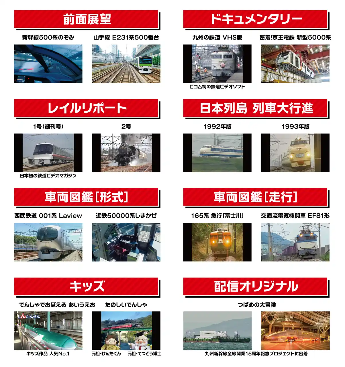 ・「前面展望」「鉄道ドキュメンタリー」「車両紹介や走行映像」「お子様向け」など、120以上の |