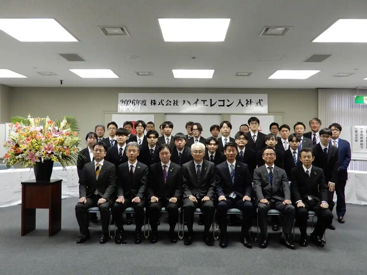株式会社ハイエレコン(本社:広島県広島市、代表取締役:上田康博)は、2026年4月1日(水)に本社にて、2026年度新入社員の入社式を執り行いました。今年度は16名の新入社員が入社し、新たな希望を胸に社会人としての第一歩を踏み出しました。 |