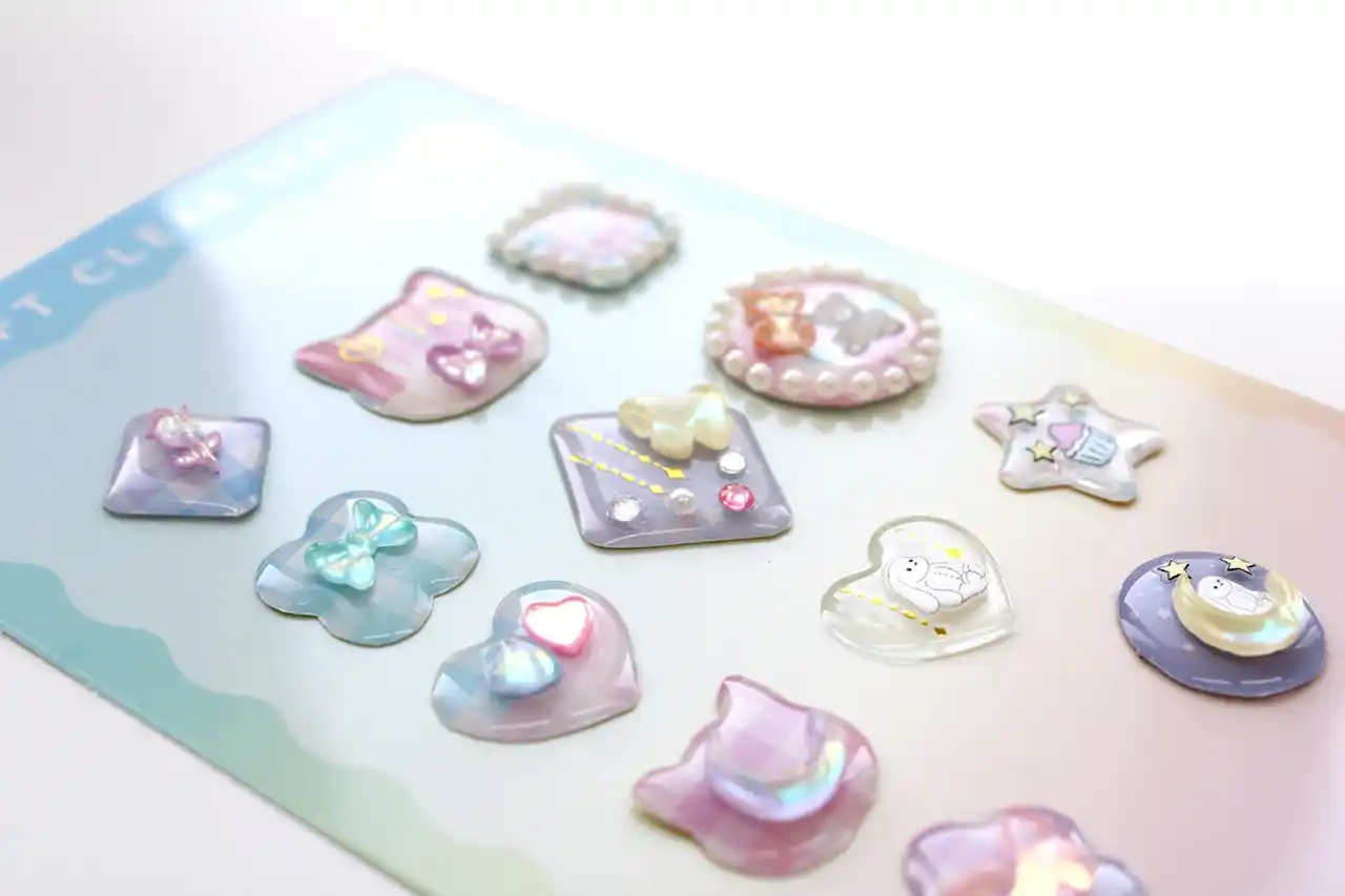 近年、「シールを手作りする」という楽しみ方が広がっています。 レジンやボンド、耐震マットなど、本来シール用途ではない素材を活用し、工夫しながら制作を楽しむ方も増えています。 |