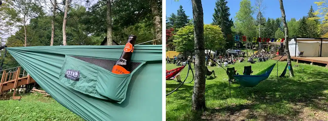 会場内に、木陰でハンモック体験できるスペースを設置!