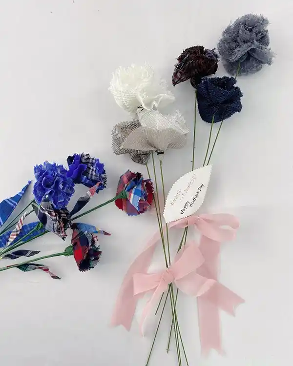 天然藍染体験で新たなファッションを楽しもう! H.A.L.Uの準備している日本てぬぐい又はオリジナルバックを、お客様の発想と創造力で天然藍染を行っていただきます。 要相談で、事前予約にて、タンスやクローゼットのお洋服等、アップサイクルもいたします。 【開催時間】 1部 13:00 / 14:15 2部 14:30 / 16:00 【所要時間】 各回約75分 【対象】 どなたでも(小学生以下は保護者同伴でご参加ください) 【参加人数】 各回20名程度 【参加費】 日本てぬぐい 子供1,500円、大人2,000円 オリジナルバック 子供2,500円、大人3,000円 アップサイクル(持込品) 2,000円~(生地容量で相談) 【予約】 事前申込(残数当日予約も可) > ご予約はこちらから ※ 染色の飛び跳ねでお洋服が汚れる可能性がございますので、汚れてもいい服装でお越しください。 ※ アップサイクル(持込品)でお申込みいただきましたお客様には、事前に内容のご相談をさせていただきます。 スタイレム瀧定大阪株式会社 余ったハギレでカーネーションを作ろう |
