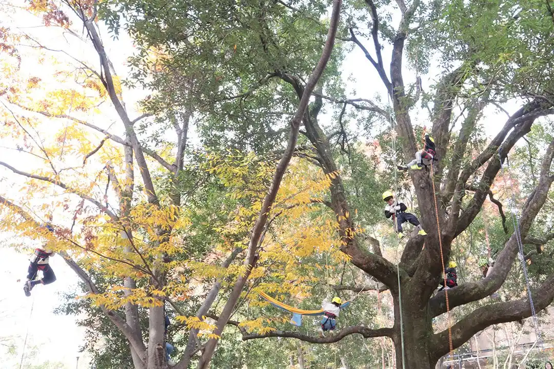 ・ ビニール傘の素材でつくる「アンブレラマーカー」作り 傘の紛失防止にも役立つ、カラフルでユニークな目印を作ります 【開催時間】 11:00~17:00(最終受付 16:00) 【所要時間】 約30分~ 【対象年齢】 3歳~(小学生以下は保護者同伴でご参加ください) 【参加費】 1,000円/個 ※特典としてoctangleオリジナルバッグをプレゼント! 【予約方法】 当日先着順受付 ・ 持ち手をカスタマイズ!「カラフルコードラッピング」 傘の持ち手をパラコードで編み込み、自分仕様の握り心地とデザインに変身させます。 お気に入りの「My傘」をお持ち込みいただくことも大歓迎です! 「長く、大切に使う」という豊かさを、ぜひ会場で体験してください。 【開催時間】 11:00~17:00(最終受付 16:00) 【所要時間】 約30分~ 【対象年齢】 3歳~(小学生以下は保護者同伴でご参加ください) 【参加費】 1,000円/個 ※傘代込み 【予約方法】 当日先着順受付 ・ octangle アップサイクル・マーケット(物販) 廃棄されるはずだったビニール傘が、洗練されたスマホポーチやアクセサリー・フラワーに! 職人の手仕事とアイデアが詰まったプロダクトを展示販売いたします。 【開催時間】 11:00~18:00 Green Fingers ロープや特殊なギアを使用した安全な木登り |