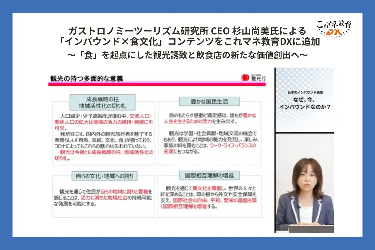 こうした背景を受け、これマネ教育DXでは、飲食店が「観光資源」として価値を発揮するための実践知を学べるコンテンツとして、本プログラムを新たに追加いたしました。 |