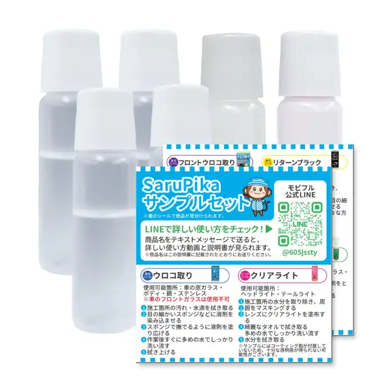 1つずつ買い揃えなくても、これひとつでOK! プロも納得のカーケア用品を、使いやすいサンプルサイズで厳選したアイテムも用意しております。 |
