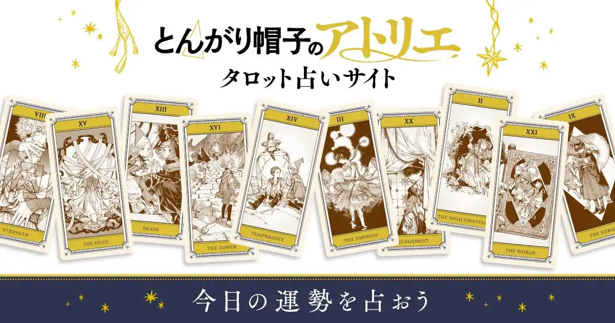 全国一部書店でコミックス購入特典として配布された『とんがり帽子のアトリエ』特製タロットカードを用いて毎日1枚のカードを引くことで、その日の運勢やアドバイスを受け取ることができます。 |