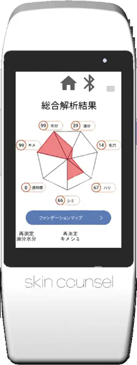 現在の肌状態だけでなく、これから現れやすい肌変化の兆しまで分析する独自の肌分析。 |