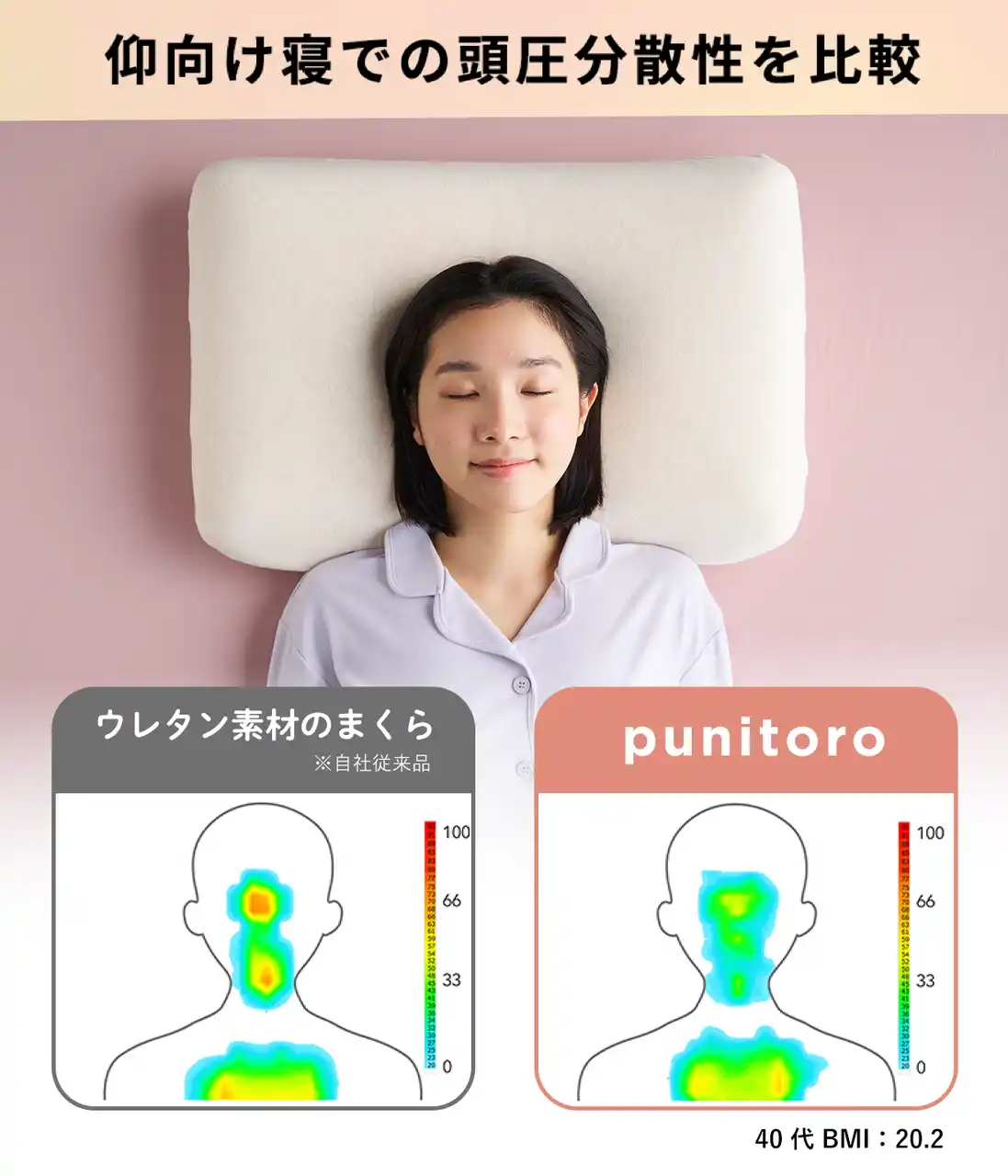 頭、首、肩までしっかりフィットしながら、かつ広範囲に圧力を分散します。 |