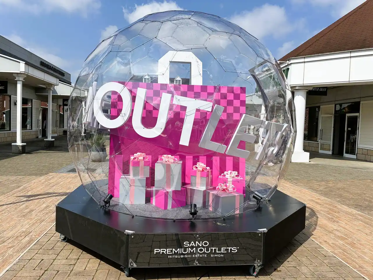 ドーム内にはショッピングバッグやギフトボックスのオブジェを設置し、屋外ショッピングならではの高揚感を演出。訪れたお客様のショッピング気分を盛り上げます。 |