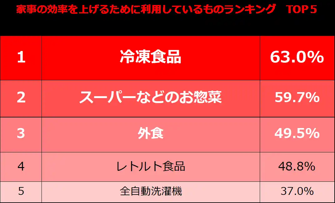 6.家事の効率を上げるために利用しているもの「冷凍食品」63.0%/ランキング |