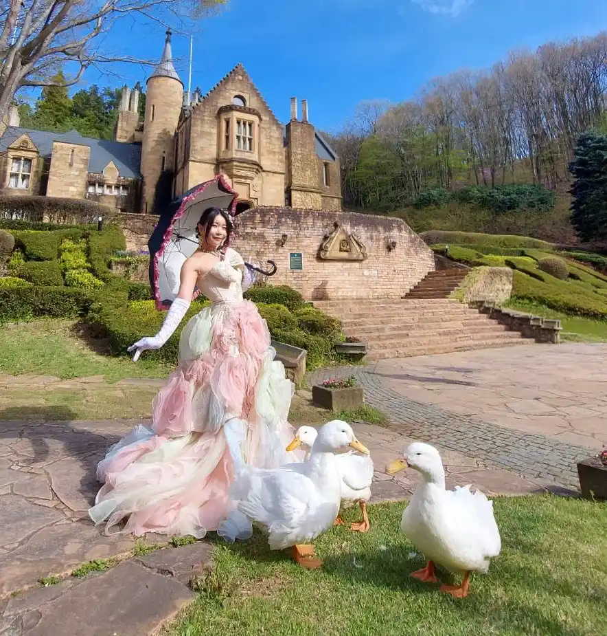 ロックハート城で親しまれている人気のアヒルたちが、1日2回お城の正面に登場。 「ドレスを着てアヒルと一緒に記念撮影」は、ここでしか撮れない「映える」1枚。 |