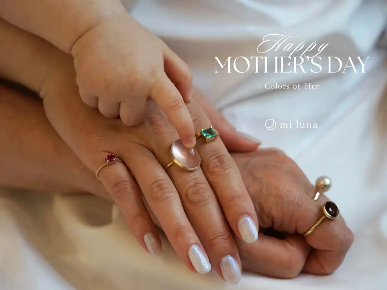思い浮かべる色は、人それぞれ違うと思いますが、天然石は同じ種類でもすべて違う色合いを持ちます。それぞれの色をジュエリーに重ねて、大切な方へ、そしてご自身へ。母の日をきっかけに、自分自身や母、子供とのつながりについて改めて想いを見直す。mi lunaがひとつのきっかけとなれば幸いです。」 |