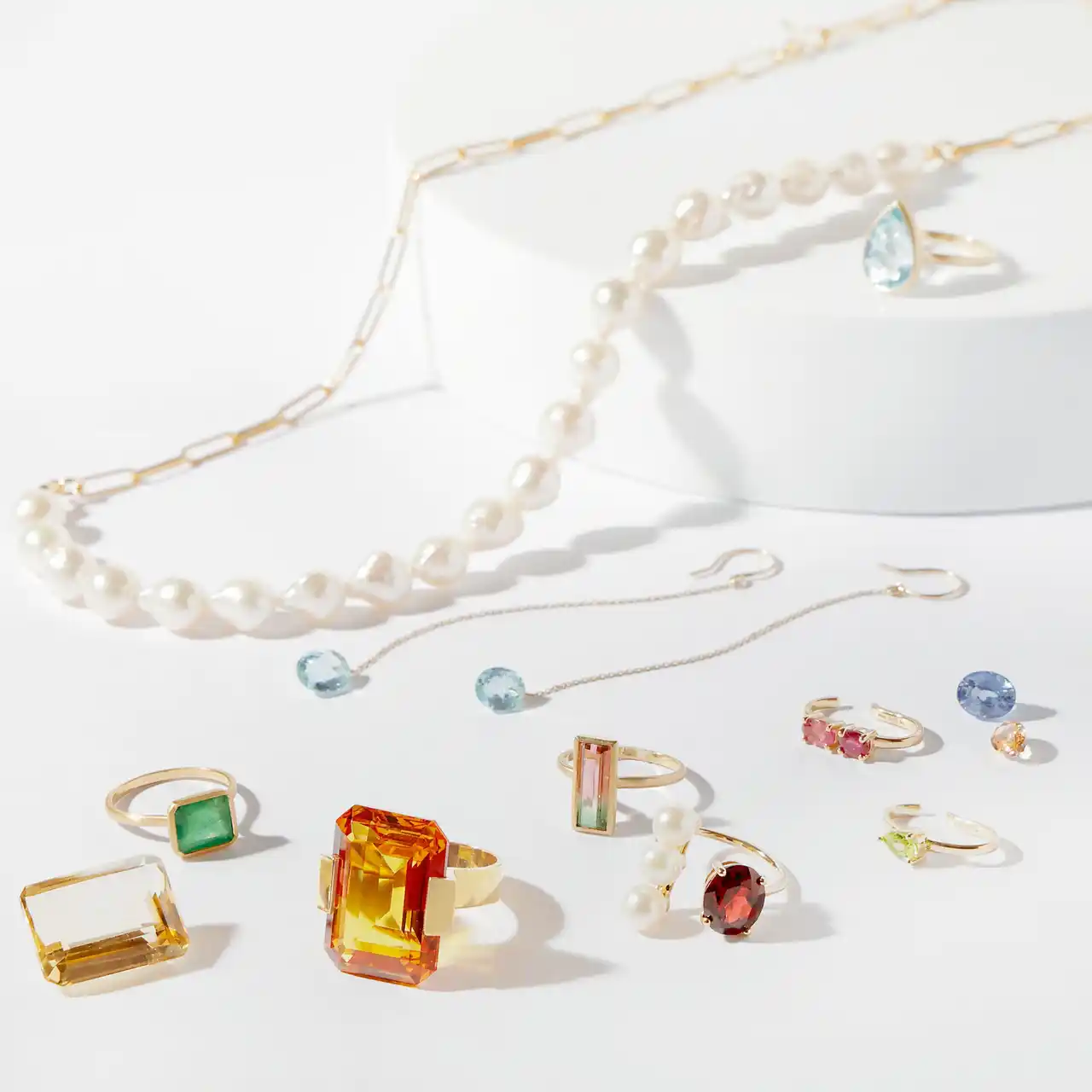 あえて左右違う形や色合いのピアスを組み合わせたり、インパクトのあるリングにしたり。それぞれの個性を活かし、かつ時代を超えてこれからも長く使い続けられるデザインに載せ、お客様のもとへお届けします。肌のトーンや好みに合わせる、その時の自分の気分や想いを反映するなど、より自分らしさを追及できるカスタムジュエリーもオーダーできます(現在はPOPUPなどリアル開催イベント限定) |