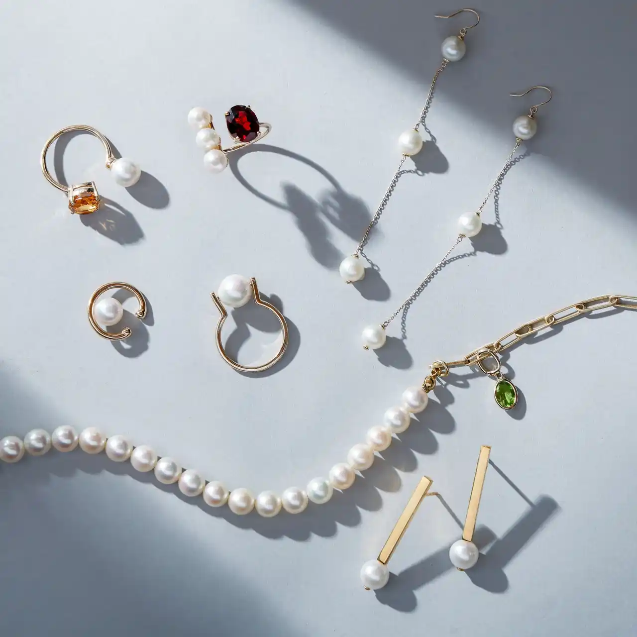 mi lunaでは、KOMEHYOで買取された上質な天然石やパールを使用しています。たとえば、世界で人気が高まるアコヤパールのなかでもテリの良いもの、新たに採掘しづらい希少な色合いの宝石など、KOMEHYOだからこそ集められる豊富なバリエーションが特徴です。これらを手に取りやすい価格で提供できるのも、天然石をリユースした、アップサイクルジュエリーならではの魅力です。 |