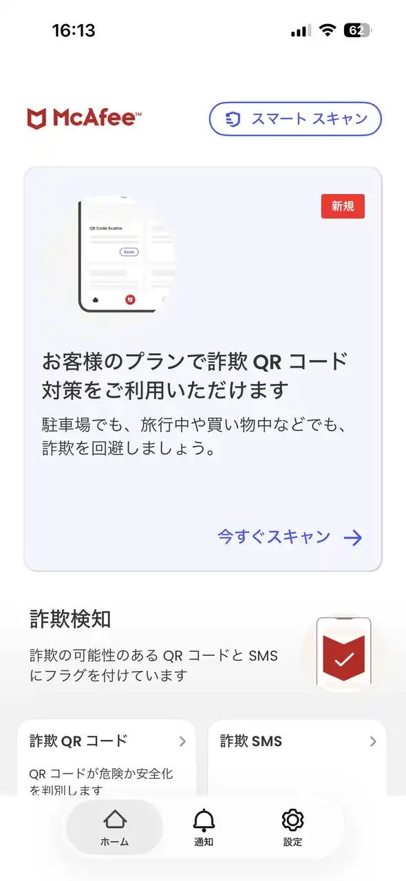 こうした脅威に対抗するため、マカフィーは「QRコード詐欺チェッカー」を含むセキュリティ機能を強化し、皆様の安全を守ります。 |