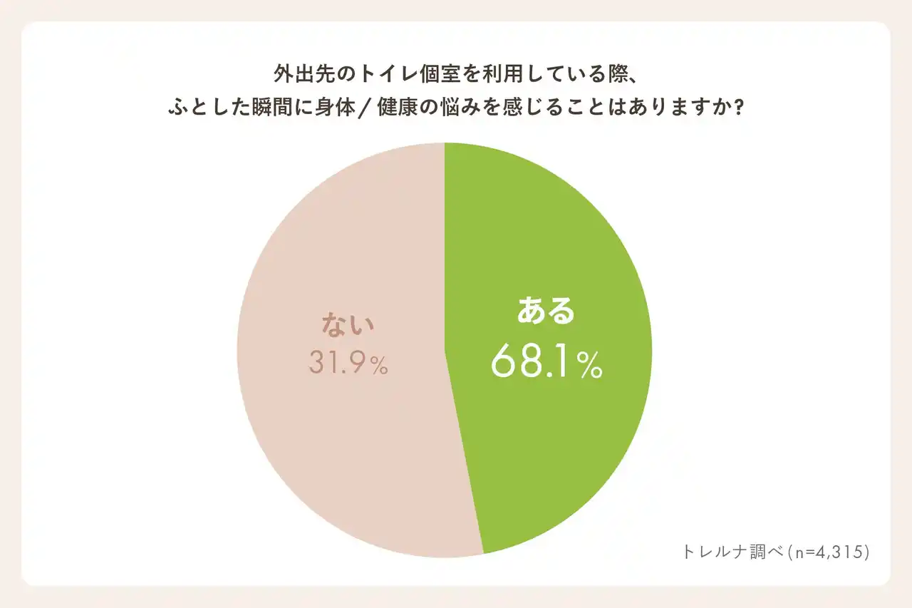 トイレ個室で健康や身体の悩みを想起すると回答した人は68.1%。一人になれる空間だからこそ、自身の状態を見つめ直す時間になっている |