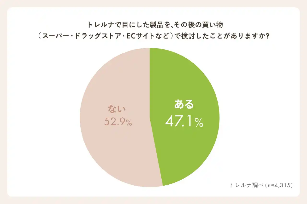 トレルナで見た商品を「購買検討したことがある」と回答した人は47.1%。広告接触後の購買行動にも影響が見られる |