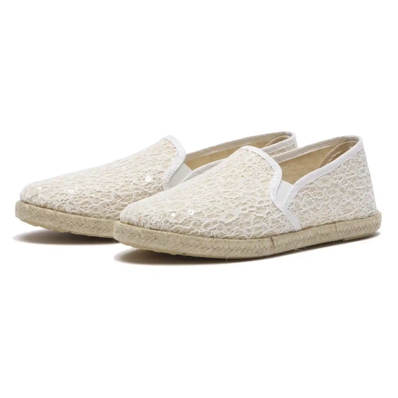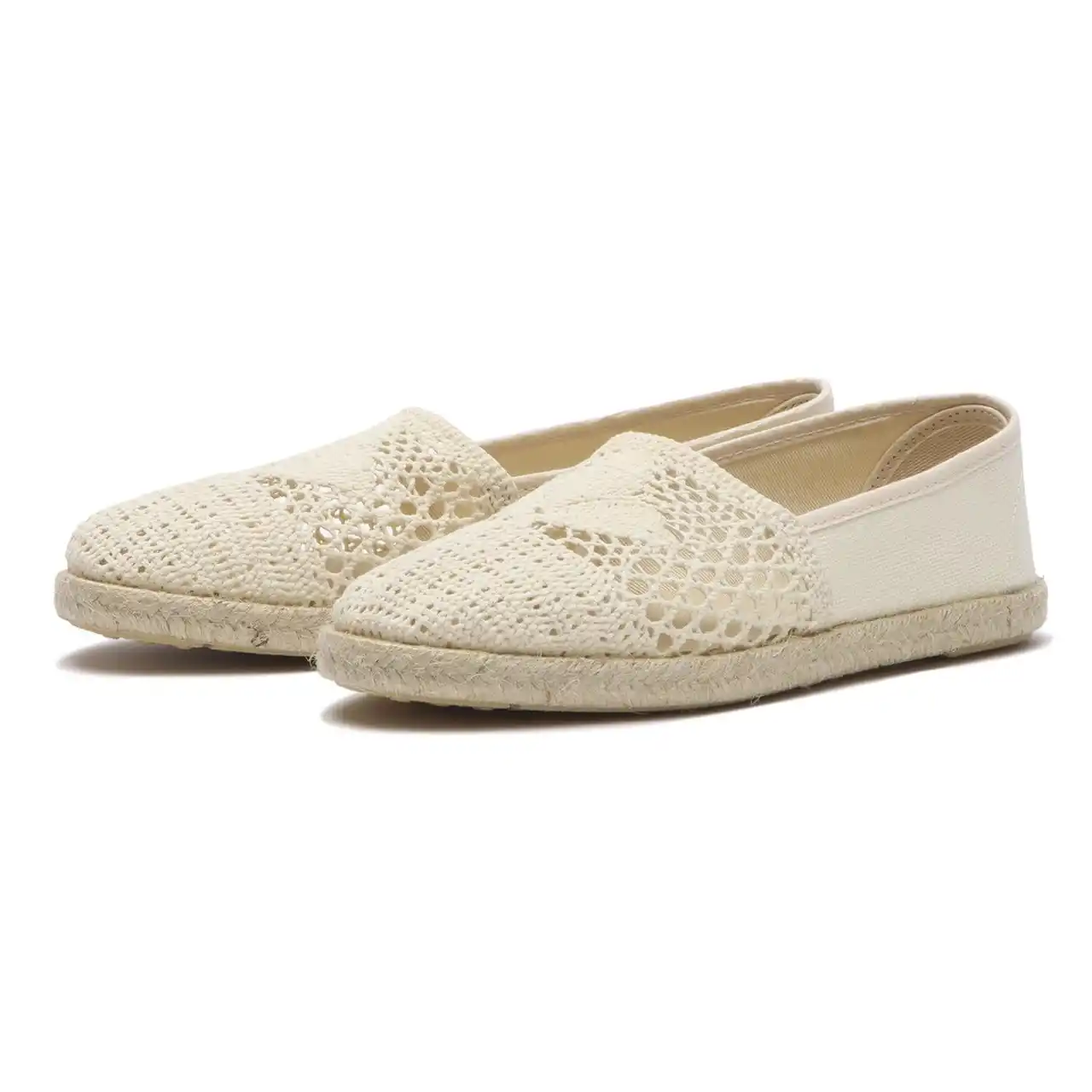 エスパドリーユはピレネー山脈のバスク地方を発祥とする、底が麻のロープ、甲が綿で作られた軽快なスリッポン型のシューズ。今回ラインナップされたエスパドリーユモデルも、本場スペインで生産。涼しげな抜け感のある「クロシェ編み」と、スパンコールがエレガントに輝く「レース素材」の2モデルが登場。高い通気性で蒸れにくく、さらっとした履き心地が持続します。 |