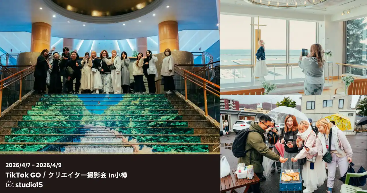 TikTokを中心としたショートムービー(短尺動画)領域で広告代理店事業・プロダクション事業を展開する、studio15株式会社(本社:東京都世田谷区、代表取締役:岩佐 琢磨、以下studio15)は、一般社団法人小樽観光協会(以下、小樽観光協会)と連携し、小樽での宿泊促進を目的としたTikTok GOによるクリエイター撮影会を実施しました。 |