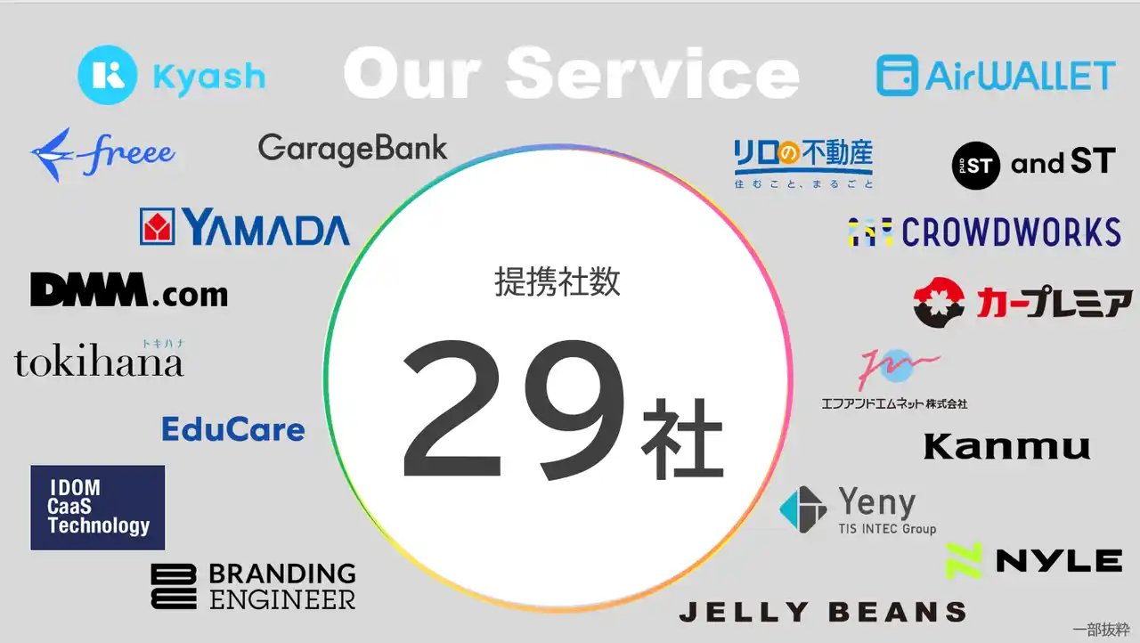 営業開始1年半で提携社数は29社、累計申込者は40万人に到達しました。今後、アコムグループの知見を活かした高度な与信を確立し、5年後には提携数100社超、さらには海外展開やプラットフォーム化を見据えています。 |
