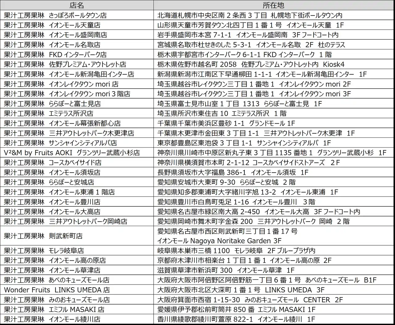 販売店舗:全国のフルーツジュースバー 31店舗限定(下記「販売店舗一覧」参照) |