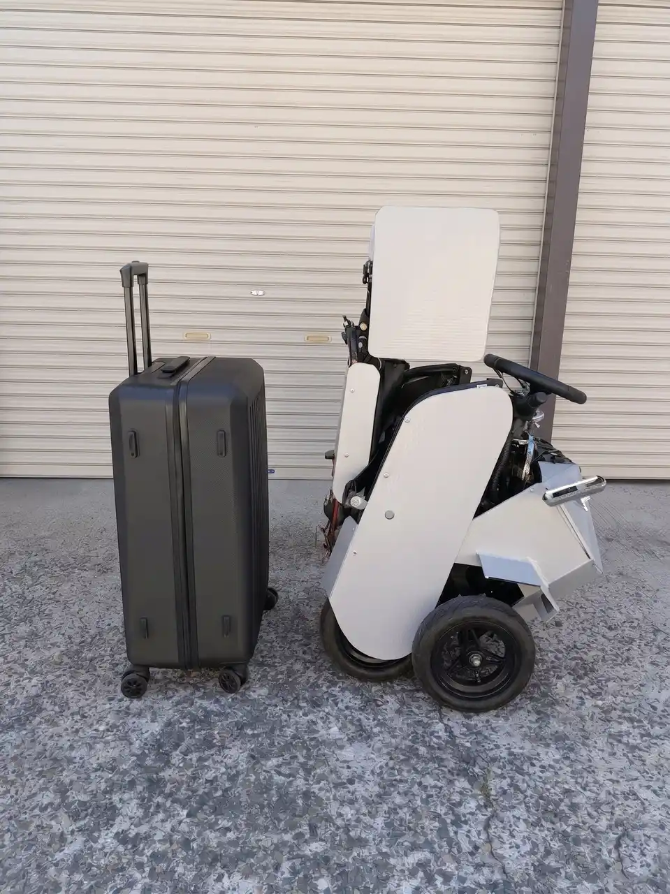 折り畳み時はスーツケースサイズへコンパクト化。自宅の玄関や室内に持ち込める |