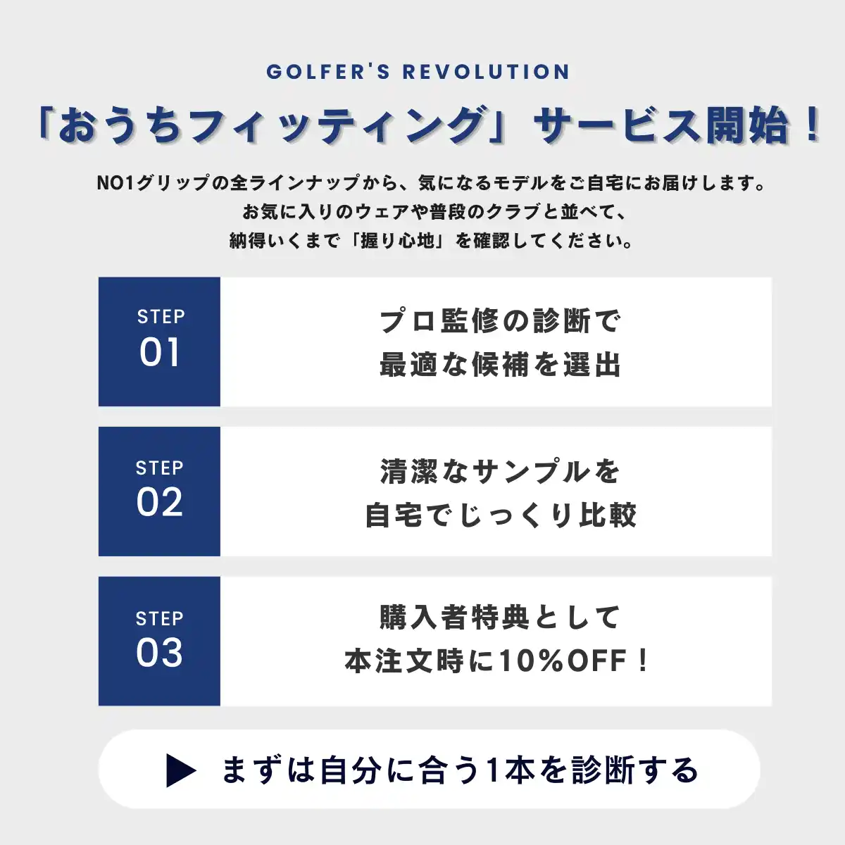| ■ 「NO1-GRIP おうちフィッティングサービス」3つの特徴 | |||||||||||||||||||||
