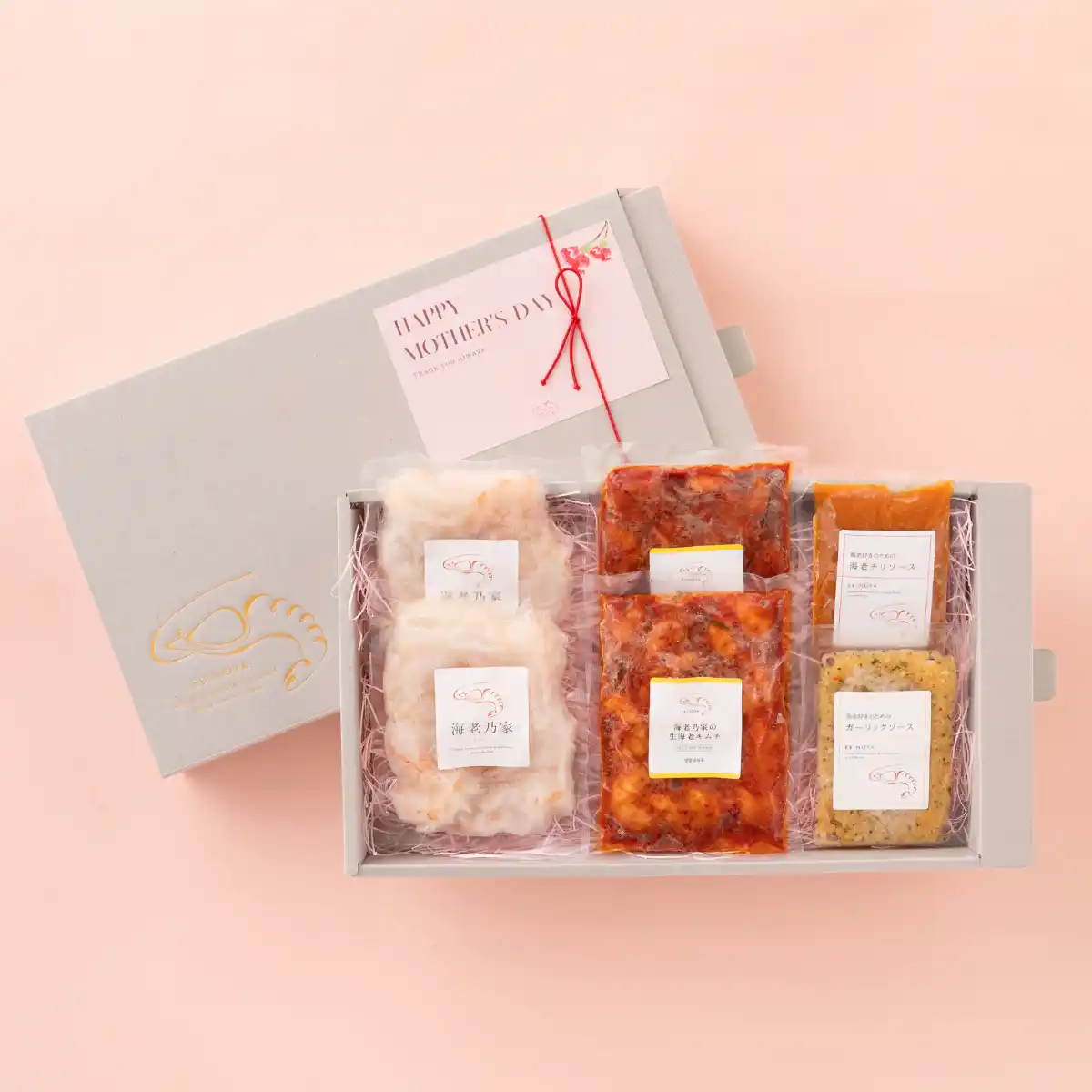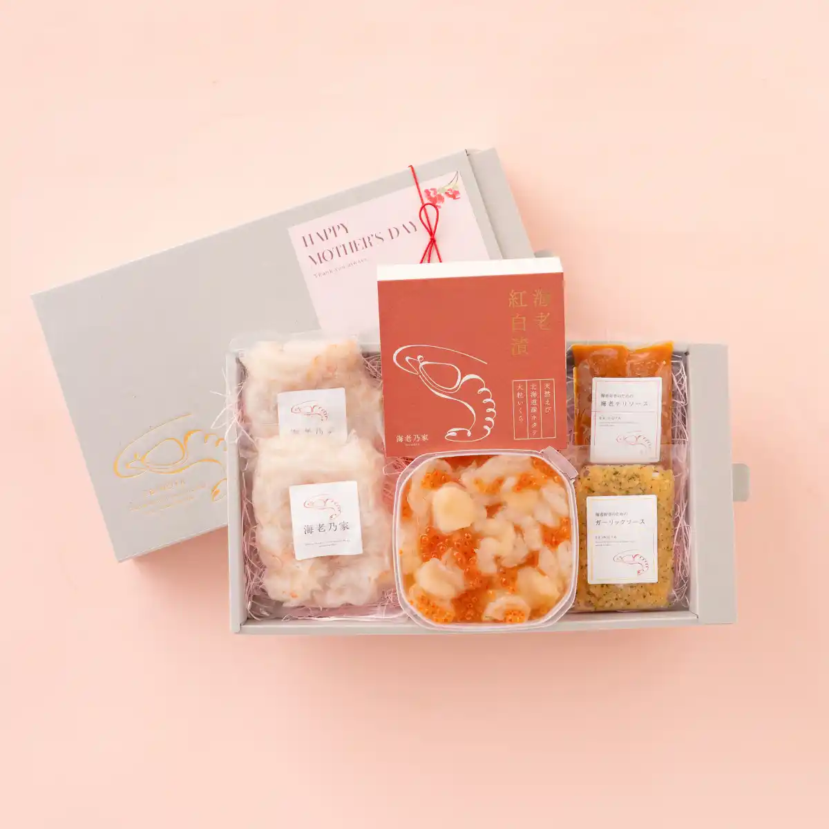 「Happy Mother’s Day」母の日限定メッセージカード無料 言葉にできない想いも、上質な海老ギフトと一緒なら自然に届けられる。 |
