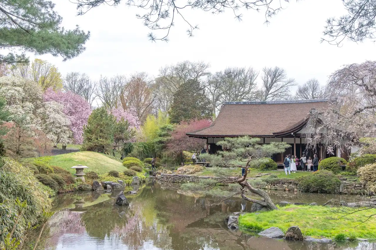 桜の見頃は例年3月下旬から4月上旬ですが、この季節には市内各地の文化スポットにも多くの来訪者が足を運びます。なかでも注目したいのが、ウェスト・フェアマウント公園にある「松風荘日本文化センター」。17世紀様式の日本家屋と、全米で高く評価されている日本庭園が広がり、フィラデルフィアに息づく日本文化の歴史を感じることができます。1953年に日本で建設され、伝統的な技法と材料で作られた建物は、のちにフィラデルフィアへ移築され、現在まで維持されています。この場所は1876年のフィラデルフィア万国博覧会以来、日本建築が受け継がれてきた由緒ある地でもあります。日本国外では唯一とされる檜葺きの屋根を持つ伝統建築のほか、庭園や鯉が泳ぐ池、小島などもゆったりと見学できます。シーズンを通して公開されている松風荘は、本格的な日本の文化や景観美に触れられる、特別なスポットです。 |