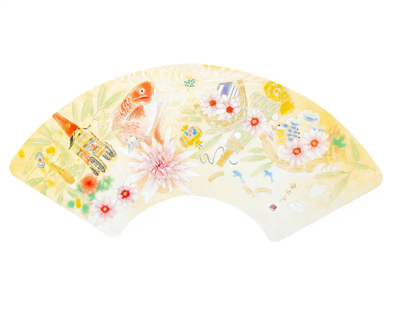 他にも、令和八年度祇園祭・菊水鉾に奉納予定の扇子および手ぬぐいの原画、さらに裏千家茶道月刊誌『淡交』にて一年を通して描き下ろされた十二か月の扉絵原画を六曲一双の屏風として構成した作品など、個人の制作にとどまらず、祭礼や茶の湯といった京都の文化と深く結びつき、町や人々のもとへと開かれていく美術のかたちをご紹介します。 |
