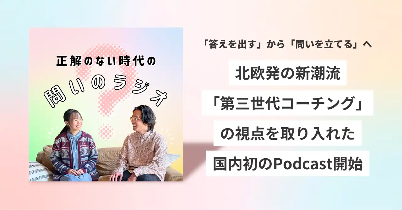 株式会社co-ne(本社:東京都渋谷区、代表取締役:浅井元規)が運営するICF(国際コーチング連盟)認定実践型オンラインコーチングスクールCAM Japan(キャムジャパン)は、2026年4月10日より、北欧発の新潮流「第三世代コーチング」のアプローチを用い、不確実な時代を生きる姿勢を探るポッドキャスト番組『正解のない時代の「問い」のラジオ』を配信開始いたしました。 |