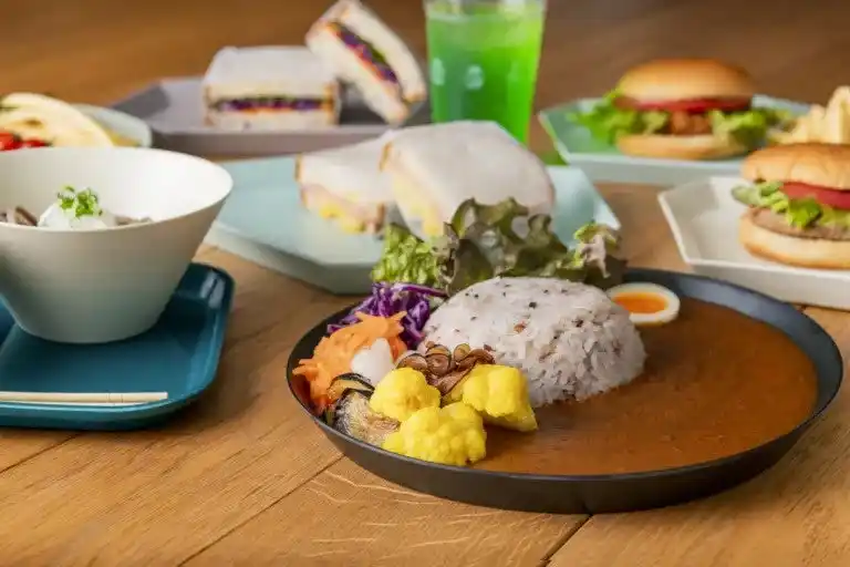 芝生の上でのピクニックや、アクティビティの合間に気軽に楽しめる軽食メニューを取り揃えています。トーストサンドやポテト、ドリンクをバスケットに詰めた「ピクニックBOX」を持って、高原の景色を眺めながら屋外での食事を楽しめます。そのほか福井名物ソースカツ丼とおろしそばのセットや、ソースかつ丼のソースを使った「JAMバーガー」など、手軽で満足感のあるラインナップが魅力です。 |