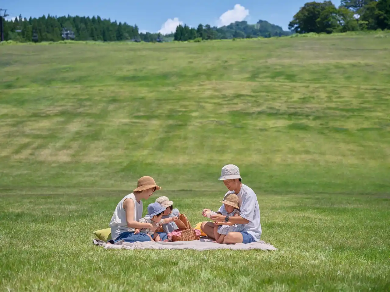 グリーンシーズンの主役となるエリアです。一面に広がる芝生の上で寝転んだり、お子さまと一緒に駆け回ったりと、思い思いの時間を過ごすことができます。隣接する J Cafe のテイクアウトフードを片手に、ピクニックのような気軽さで自然の中でお楽しみいただけます。芝そりやバランスボード、フリスビー等、無料の遊び道具も揃い、朝から夕方まで、高原ならではの開放的な時間をお過ごしください。 |