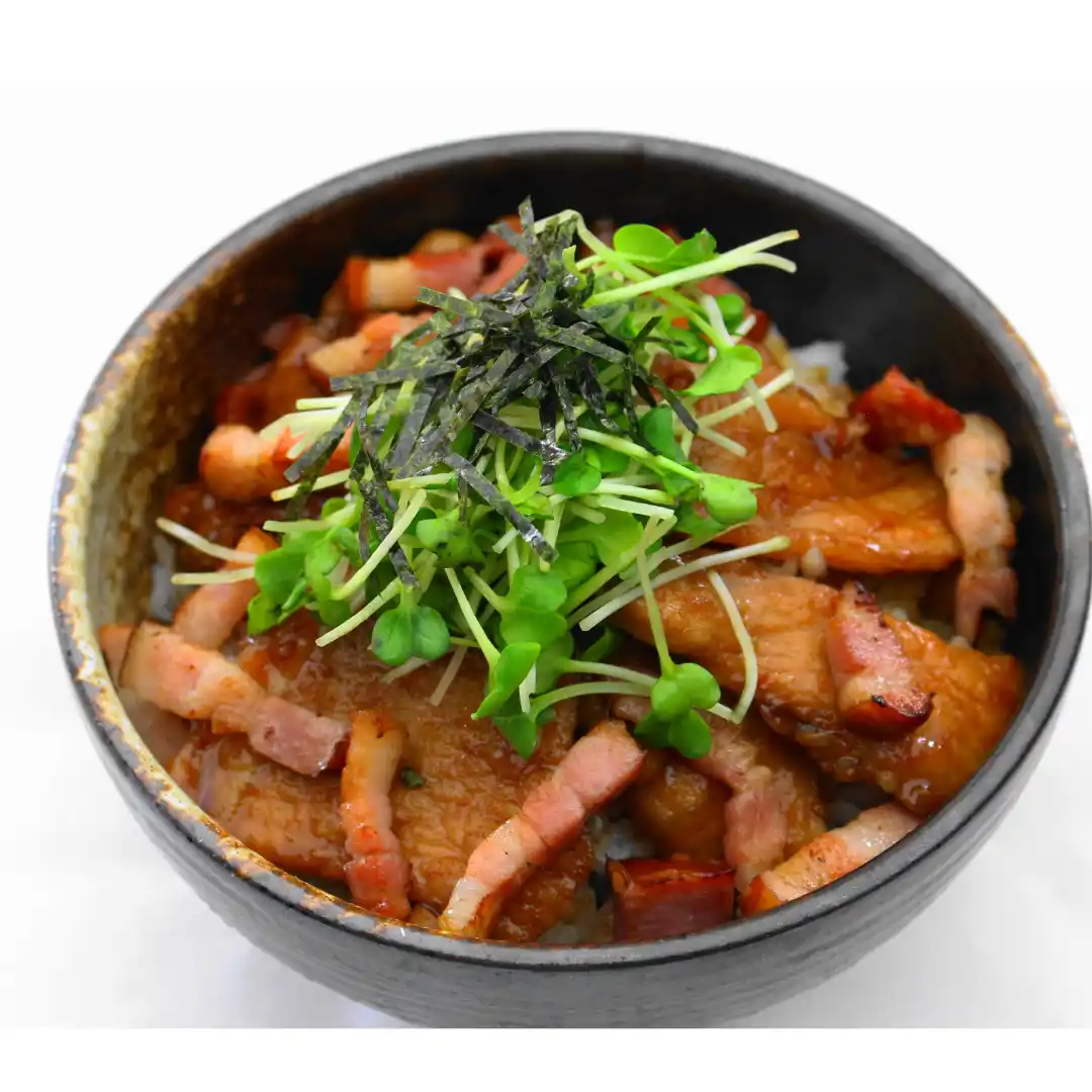 食堂『停満里』で人気のベーコン丼。テイクアウトと合わせて楽しめます。 |