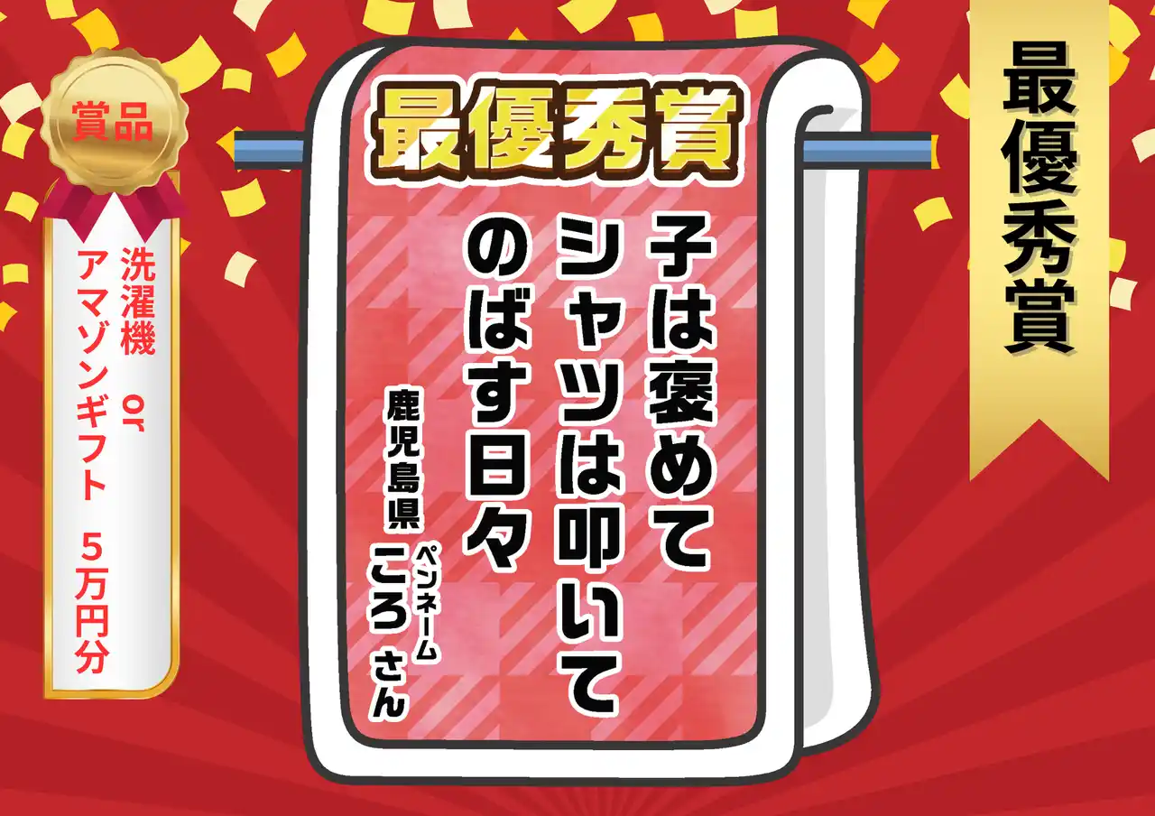 最優秀賞(1句):洗濯機 または 5万円分のアマゾンギフト券 |