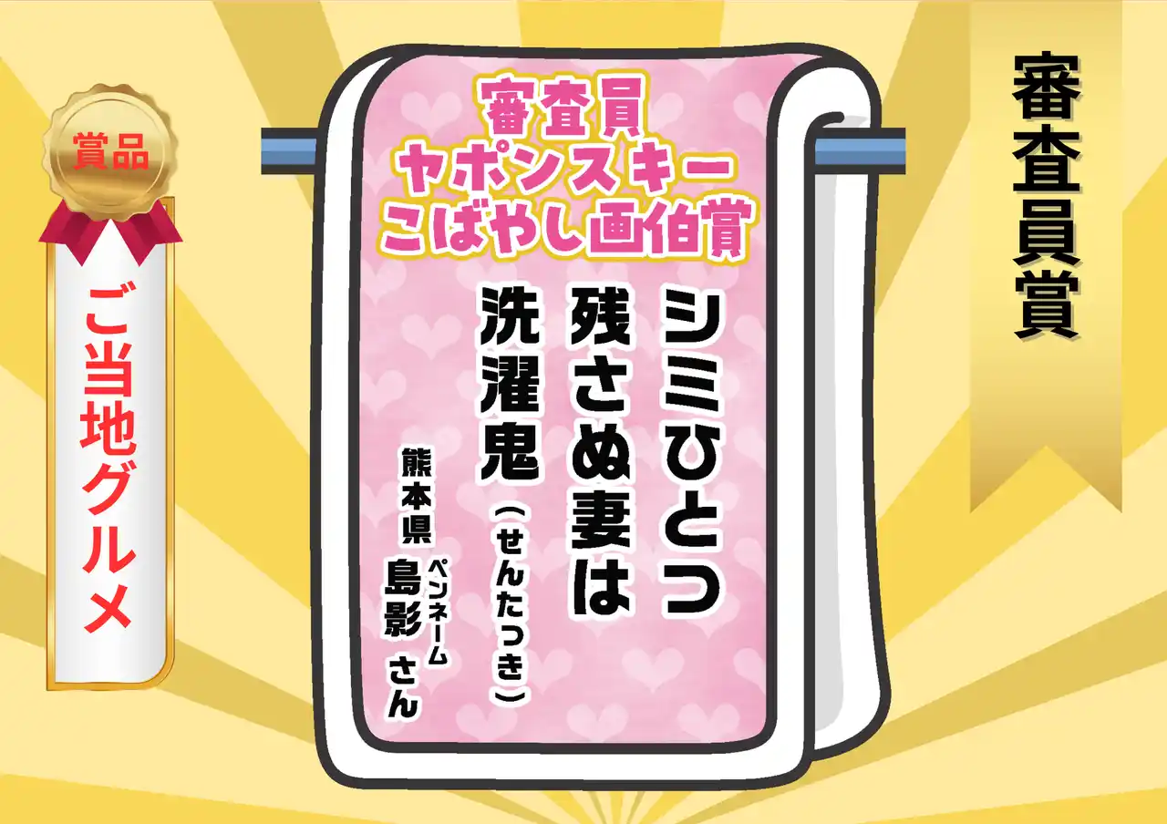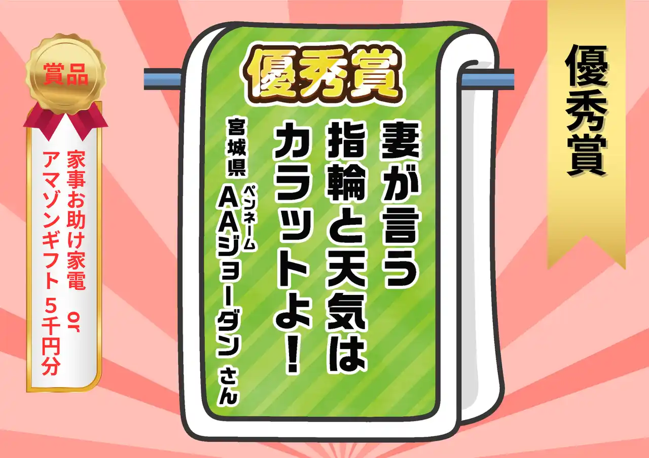 優秀句(1句): 家事お助け家電 または 5千円分のアマゾンギフト券 |
