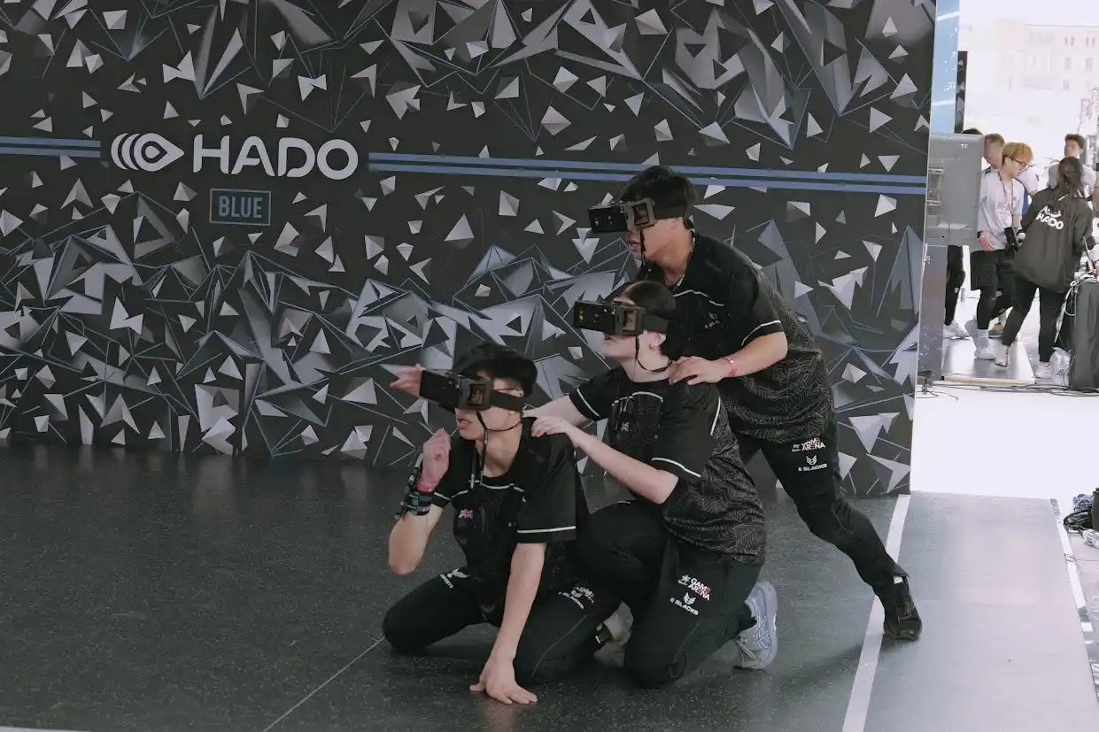 HADOは、現実空間で身体を動かしながらデジタル要素を重ね合わせる、フィジカルARスポーツです。 プレイヤーはヘッドセットとアームセンサーを装着し、最大3対3のチーム戦で対戦します。 |